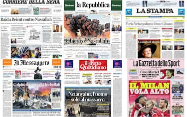 Sono ancora una volta gli sviluppi della guerra in Medio Oriente - in particolare i raid israeliani a Beirut e il discorso di Netanyahu all'Onu - a tenere banco sulle prime pagine dei principali quotidiani italiani