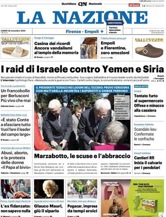 - "I raid di Israele contro Yemen e Siria" allargano l'escalation della guerra in Medio Oriente. Intanto è stato ritrovato il cadavere di Nasrallah. Fotonotizia sul ricordo della strage di Marzabotto con il presidente Mattarella e quello tedesco nei luoghi dell'eccidio. Per la politica, parla Paita (Italia Viva): "E' stato Conte a sfasciare tutto, vuole fare il leader del campo largo". Nel ciclismo impresa eroica di Pogacar che vince il Mondiale
