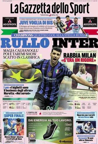 - Sulla Gazzetta dello Sport spazio alla roboante vittoria dell'Inter sulla Stella Rossa, con protagonista l'iraniano Mehdi Taremi. Il Milan sconfitto dal Leverkusen se la prende con l'arbitro, mentre è già vigilia del secondo appuntamento di Champions League per Atalanta, Bologna e Juventus
