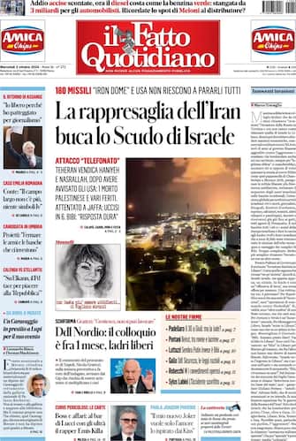 - Sul Fatto Quotidiano si legge 'la rappresaglia dell'Iran buca lo scudo di Israele'. Di spalla il ritorno di Julian Assange e la rottura col campo largo di Giuseppe Conte