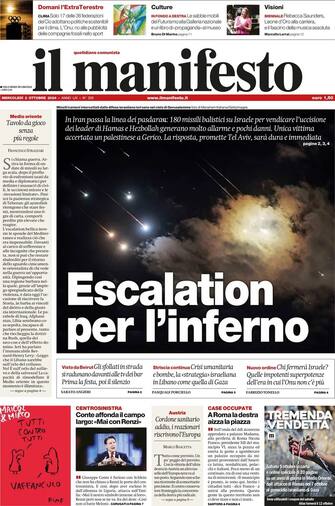 - 'Escalation per l'inferno' è l'emblematica immagine scelta per la copertina del Manifesto. Unica vittima accertata, per ora, un palestinese a Gerico. La risposta, promette Tel Aviv, sarà "dura e immediata"