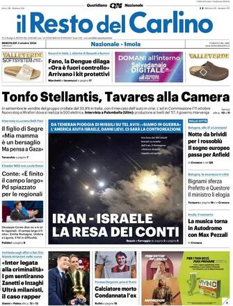 - Sul Resto del Carlino c'è spazio anche per il tonfo di Stellantis, con le vendite crollate del 33,9% a settembre in Italia e l'amministratore delagto Tavares atteso alla Camera l'11 ottobre