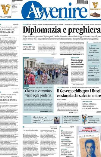 - "Diplomazia e preghiera" è la scelta del titolo di apertura per Avvenire: "Il Papa indica una giornata di digiugno per il 7 ottobre. Domenica a Sana Maria Maggiore l'invocazione della pace". Spazio anche all'emergenza migranti: "Il Governo ridisegna i flussi e ostacola chi salva in mare"