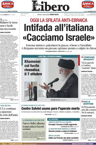 - Agli ordini di Khamenei: l'ayatollah inneggia al 7 ottobre, i pro-Pal ignorano i divieti e manifestano. Scatta l'allarme sicurezza: si temono estremisti e infiltrati. Usa, Trump può vincere: l'America non sarebbe più la stessa. Il Mef vede sacrifici, ma in due anni Meloni avanti senza tagli