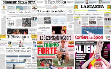 - Le parole del primo ministro israeliano aprono anche l'edizione odierna di Repubblica. "L'Onu ritiri i caschi blu" è il perentorio diktat di Netanyahu, mentre l'Idf parla di "errore" a proposito dell'ultima irruzione in un avamposto Unifil. Anche qui grosso spazio al successo di Sinner che assume i contorni di una sorta di passaggio di consegne, con Djokovic che ammette: "Mi rivedo in lui"