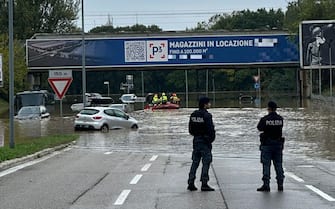 - In foto, un altro intervento delle forze dell'ordine in una strada allagata a Bologna