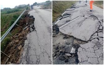 - In foto, i danni al manto stradale della Sp40 di a Cadelbosco (Reggio Emilia)
