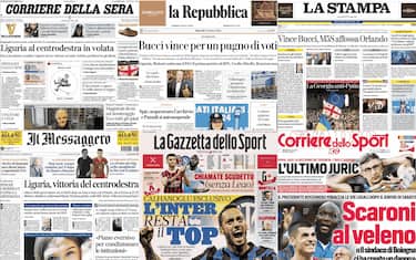 - Le elezioni regionali in Liguria dominano l'apertura del Corriere della Sera: "Liguria al centrodestra in volata": "Bucci presidente: sconfitti i signori del no". Al centro, fotonotizia sull'uomo la cui memoria è stata cancellata a seguito di un incidente nel 2019: "Luciano e la memoria perduta: ho 23 anni, perché sono vecchio?". Spazio agli esteri, con le elezioni in Georgia. Poi il caso dossieraggio