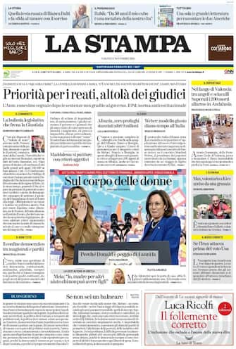 Sulle prime pagine dei giornali, le polemiche sui costi del personale dei centri per migranti in Albania e l'Anm che parla di "aria pesante" dopo gli attacchi del governo. Ampio spazio all'ipotesi di un concordato bis e all'inchiesta hacker con le nuove intercettazioni. Capitolo esteri: focus sulle elezioni americane e sugli "angeli del fango" di Valencia che puntano il dito contro la Generalitat. Medioriente, l'Iran minaccia ancora Israele