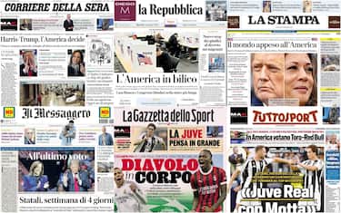 - 'L'America in bilico' è, invece, il titolo a tutta pagina scelto dalla Repubblica per un voto che potrebbe cambiare le sorti del mondo. Sette gli Stati chiave, Pennsylvania decisiva per eleggere il presidente Usa. Harris in leggero vantaggio secondo gli ultimi sondaggi. Di spalla, il nuovo stop dei giudici al decreto migranti e, più, sotto, la cronaca con l'accoltellamento di un capotreno a Genova