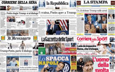 La reazione della Russia dopo la vittoria di Donald Trump alla presidenziali Usa e l'annuncio di Putin pronto ad aprire un dialogo con il nuovo presidente. Il discorso di Biden alla nazione dopo il voto. La svolta nel caso dell'omicidio del sindaco Angelo Vassallo dopo 14 anni, con l'arresto di due carabinieri. Al via domenica le Atp Finals a Torino. Questi i principali temi presenti sulle prime pagine dei quotidiani, oggi in edicola