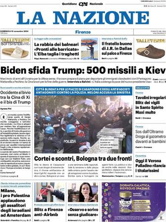 - Biden sfida Trump: 500 missili a Kiev. Maxi invio di armi all'Ucraina per la difesa aerea. Il tycoon prepara il piano per deportare gli immigrati clandestini con il Pentagono. Mattarella a Pechino: la Cina lavori per la fine delle guerre. Intervista a Salvini: "L'Italia sostenga la pace del nuovo presidente Usa". Cortei e scontri, Bologna tra i due fronti: antagonisti contro la polizia, Meloni accusa la sinistra