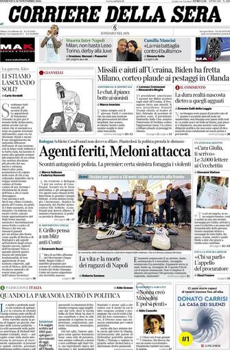 - Missili e aiuti all'Ucraina, Biden ha fretta. Milano, corteo plaude ai pestaggi in Olanda. Agenti feriti a Bologna, Meloni attacca: certa sinistra foraggia i violenti. Scontri tra antagonisti e polizia. Schlein: CasaPound non doveva sfilare. Piantedosi: la politica prenda le distanze. La vita e la morte dei ragazzi di Napoli: ucciso per gioco a 18 anni, colpo di pistola alla fronte