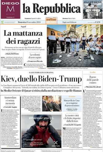 - Biden e la corsa per aiutare l'Ucraina: missili e armi prima che arrivi Trump. Obiettivo: proteggere il flusso di forniture. Il consigliere del tycoon: "Zelensky sia realista". Cecchettin un anno dopo: "Non è finita". Viaggio tra le studentesse a un anno dal femminicidio di Giulia che ha cambiato la percezione del fenomeno. I collettivi: "Sono aumentate le richieste da parte di donne minacciate". Ma la strada è ancora lunga