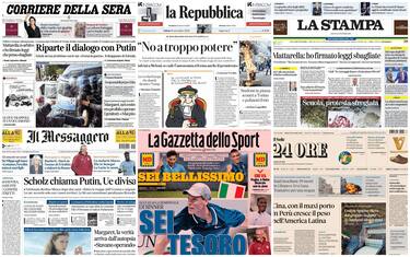 Le prime pagine dei giornali sono dedicate alle parole di Mattarella sul conflitto tra poteri dello Stato ("Non si invada il campo altrui, ho firmato leggi che non condivido") e agli scontri a Torino durante il corteo degli studenti. Focus sulla telefonata tra Scholz e Putin per porre fine alla guerra in Ucraina (con conseguente ira di Zelensky) e sulle ultime nomine di Trump nella sua futura amministrazione americana