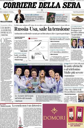 - Sono ancora una volta la guerra in Ucraina e le nomine Ue i principali temi in apertura dei quotidiani in edicola oggi. Il Corriere della Sera punta sull'escalation di tensione tra Russia e Stati Uniti dopo il via libera di Biden alla fornitura di mine antiuomo a Kiev. A centro pagina, spazio al nuovo Codice della strada e all'impresa della Azzurre del tennis, trionfatrici nella Billie Jean King Cup