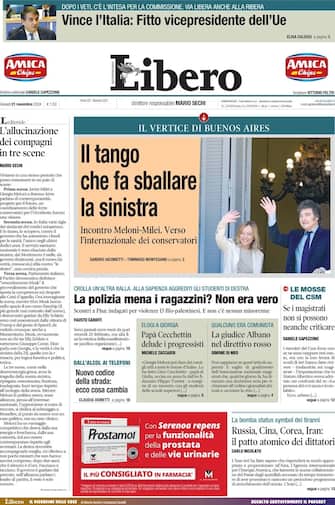 - L'incontro Meloni-Milei apre l'edizione odierna di Libero, che descrive il faccia a faccia come 'il tango che sballare la sinistra'. Taglio alto per la nomina di Fitto a Bruxelles