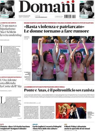 - Prima pagine del Domani. "Basta violenza e patriarcato, le donne tornano a far rumore", "Ponte e Anas, è il poltronificio sovranista"