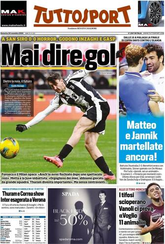 - Sullo stesso filone Tuttosport. "Mai dire gol, A San Siro 0-0 horror" e "Matteo e Jannik martellate ancora"