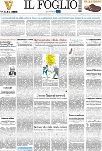 - In taglio alto, l'editoriale di Rémi Brague: "L'uomo occidentale si è ridotto a odiare se stesso e così ha intrapreso la strada verso l'autodistruzione. Diagnosi di una morte annunciata". Al centro, l'editoriale di Claudio Cerasa: "Il gran patto tra Schlein e Meloni". Spazio al Medioriente con la tregua in Libano: "In Libano è l'ora del cessate il fuoco, adesso va fatto durare". Poi, le banche: "Nell'oasi felice delle banche italiane"