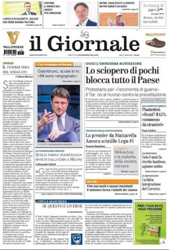 - Titolo principale sulla protesta indetta dai sindacati: "Lo sciopero di pochi blocca tutto il Paese". Fotonotizia sull'ex compagno di Meloni: "Giambruno, scuse in tv: 'Mi sono vergognato'". In taglio medio, "La premier da Mattarella. Ancora scintille Lega-Fi". In spalla, il caso Corvetto: "Piantedosi: 'Reati? Il 65% commesso da stranieri'"