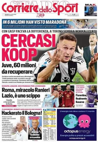 - Titolo principale su uno dei colpi di mercato estivi della Juventus: "Cercasi Koop". In taglio medio, le coppe europee: "Roma, miracolo Rainieri. Lazio, è uno scippo". Poi ,"Fiorentina, finalmente Kouame". In taglio basso, l'attacco informatico al club rossoblu: "Hackerato il Bologna"