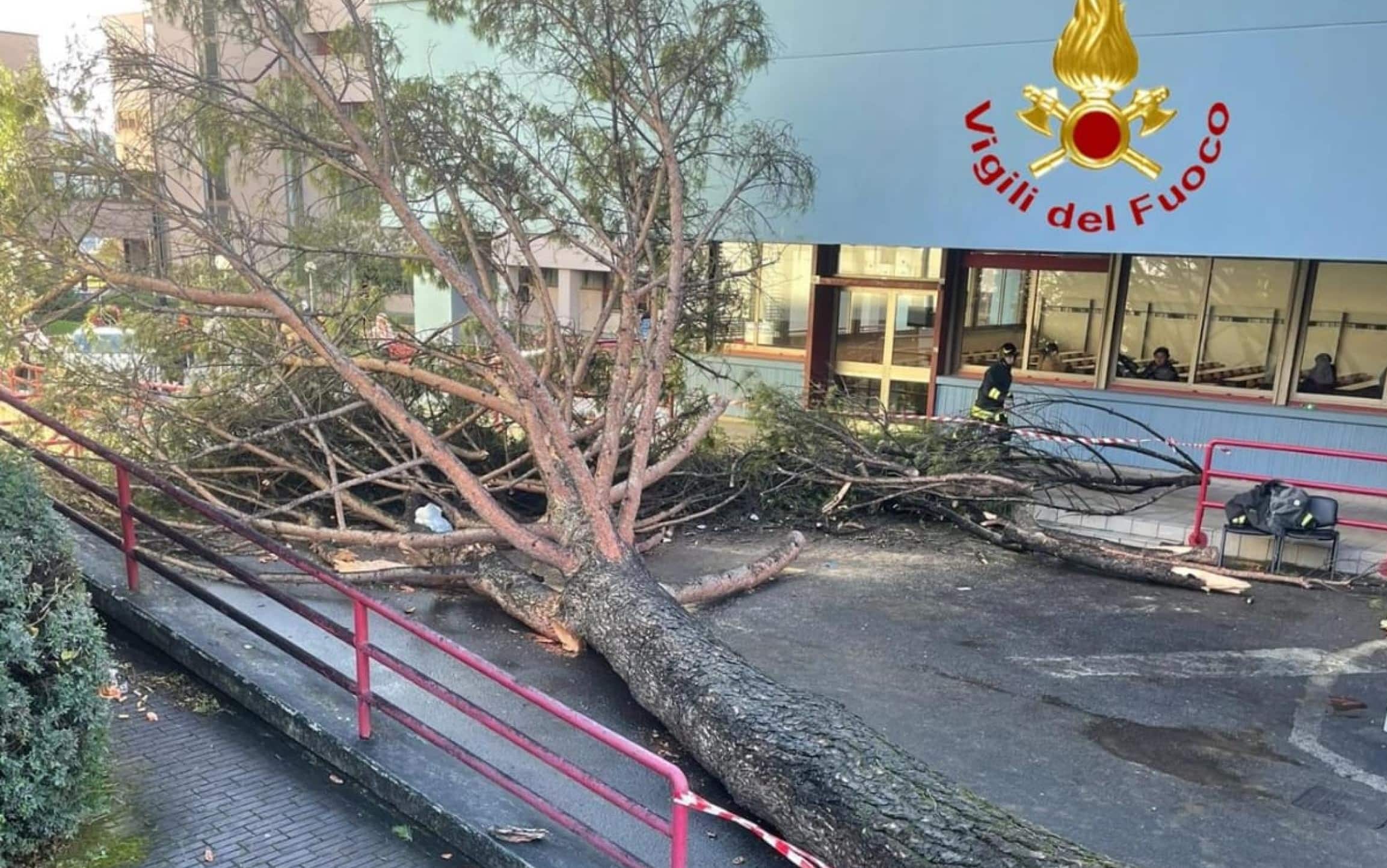 All'Università degli studi di Salerno, a Fisciano, un pino alto 15 metri si è spezzato cadendo al suolo a causa del forte vento e cinque persone sono rimaste ferite. Sul posto sono arrivate immediatamente due squadre dei Vigili del Fuoco della centrale e del distaccamento di Mercato San Severino oltre ad un'autogru. I vigili del fuoco hanno dovuto tagliare alcuni rami per consentire al personale del 118 di prestare le cure del caso. L'area è stata posta sotto sequestro. Tre delle cinque persone rimaste ferite sono state trasportate in codice rosso all'ospedale Ruggi mentre altre due sono state medicate sul posto. Tra i tre feriti in ospedale (di 20, 25 e 48 anni), uno è in condizioni gravi a causa di fratture al bacino e al cranio.