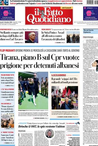 - Apertura dedicata al "flop migranti", quella del Fatto quotidiano: "Tirana, piano B sul Cpr vuoto: prigione per detenuti albanesi". Doppio taglio alto, con focus da una parte sulle dimissioni di Tavares, dall'altro sull'offensiva in Siria