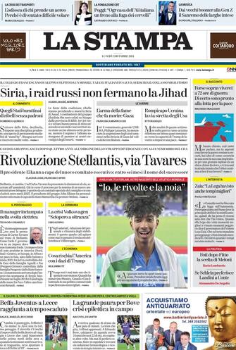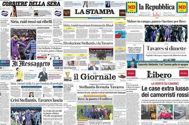 - Apertura della Stampa sulla crisi in Siria: "Siria, i raid russi non fermano la Jihad". Spazio anche alle dimissioni di Tavares: "Rivoluzione Stellantis, via Tavares". Sul fronte sport, un'intervista a Mattia Furlan, astro nascente dell'atletica mondiale