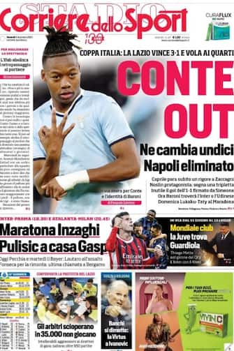 - "Conte out". L'allenatore del Napoli ne cambia undici nella sifda di Coppa Italia contro la Lazio e viene eliminato, perdendo per 3 a 1. Inter-Parma e Atalanta-Milan aprono la nuova giornata di campionato. Intanto estratti i gironi del Mondiale per Club: la Juventus è in quello del Manchester City, l'Inter in quello del River Plate