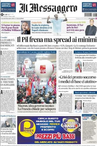 - Apertura economica per il quotidiano romano: "Il Pil frena ma spread ai minimi". Il differenziale Btp-Bund a quota 108. Fotostoria dedicata al caos politico in Francia che "chiude per sciopero" mentre Macron parla alla Nazione e pensa "all'idea di un governo tecnico". Focus sulle parole del ministro Schillaci: "Crisi dei pronto soccorso, i medici ci aiutino". A Brescia arrestata "suor 'ndrangheta, pregava al servizio dei clan"
