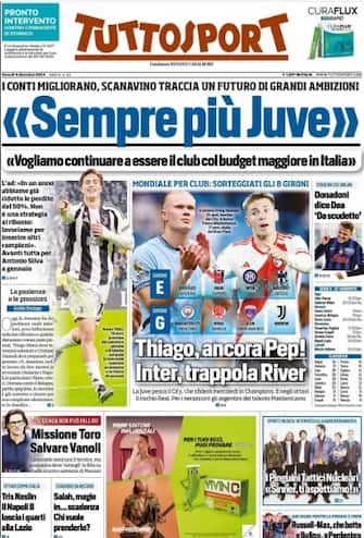 - "Sempre più Juve": i conti del club bianconero "migliorano e Scanavino traccia un futuro di grandi ambizioni". Mondiale per club, sorteggiati gli 8 gironi: "Thiago, ancora Pep! Inter, trappola River". Riparte il campionato di Serie A con Inter e Milan in campo contro Parma e Atalanta, momento critico per il Torino che deve "salvare Vanoli"