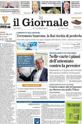 - "Terremoto Sanremo, la Rai rischia di perderlo": il Tar della Liguria chiede una gara d'appello a partire dall'edizione 2026 ma l'azienda fa ricorso. Fotonotizia dedicata alla morte di Paolo Pillitteri, ex sindaco di Milano. Focus sul gruppo neonazista fermato a Bologna: "Nelle carte i piani dell'attentato contro la premier". Francia "sempre più nel pantano" per il caos politico, ma "Macron non molla l'Eliseo"
