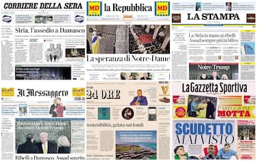 Le aperture dei giornali sono dedicate all'avanzata jihadista in Siria (che si è conclusa a notte inoltrata con la conquista di Damasco, quando i quotidiani erano già tutti stampati). Poi la riapertura di Notre-Dame a Parigi a distanza di 5 anni dall'incendio: per l'occasione, c'è stato un summit tra Trump e Zelensky all'Eliseo. In Romania, dopo l'annullamento del voto per ingerenze di Mosca, vengono perseguiti gli influencer filo-russi. Infine l'Italia, con i numeri della Cgia sul lavoro e la Prima della Scala