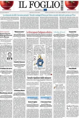 - Tra i vari temi presenti in prima pagina, focus sulla Siria che "inguaia l'indignato collettivo" mentre "Israele ripulisce dalle minacce. Approfondimento poi sulla guerra russo-ucraina: "Ragioni per un cauto ottimismo sul fatto che Trump non svenderà l'Ucraina a Putin". "Sorpresa" nel governo Meloni, apertura sull'accordo tra Ue e Mercosur