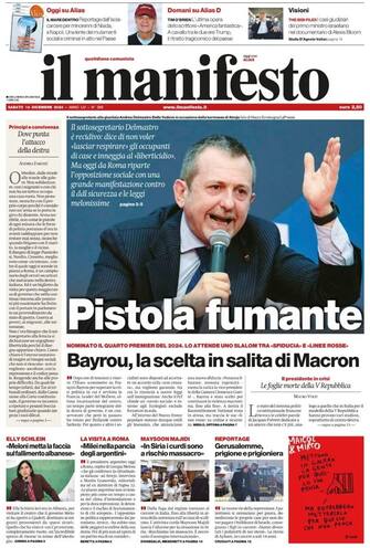 - Pistola fumante. Il sottosegretario Delmastro è recidivo: di non voler "lasciar respirare" gli occupanti di case e inneggia al "liberticidio". Ma oggi da Roma riparte l'opposizione sociale con una grande manifestazione contro il ddl Sicurezza e le leggi melonissime. Bayrou, la scelta in salita di Macron: nominato il quarto premier del 2024. Lo attende uno slalom tra "sfiducia" e "linee rosse"