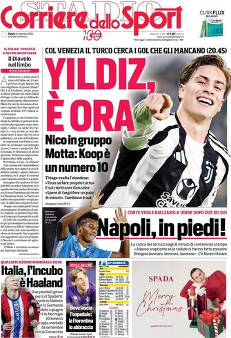 - Yildiz, è ora. Col Venezia, il turco cerca i gol che gli mancano (ore 20.45). Nico in gruppo, Motta: Koop è un numero 10. Thiago esalta l'olandese: "Teun sa fare proprio tutto". E sul rientrante Gonzalez: "Spero di fargli fare un paio di minuti". Cambiaso è out. Napoli, in piedi! Conte vuole rialzarsi a Udine dopo due ko