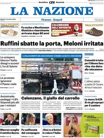 - Ruffini sbatte la porta, Meloni irritata. Dimissioni dall'Agenzia delle entrate e accuse al governo: le tasse non sono pizzo di Stato. La Lega: stia lontano dalle tasche degli italiani. L'ipotesi di un ruolo politico in un centro alleato al Pd. Intervista a Renzi: "I voti centristi valgono il doppio, sono decisivi per vincere". Calenzano, il giallo del carrello: il sollevamento del macchinario avrebbe causato l'esplosione