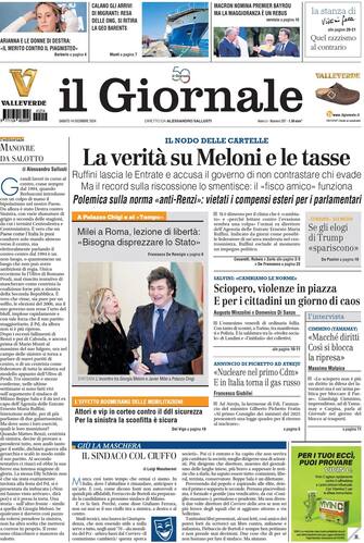 - La verità su Meloni e le tasse. Ruffini lascia le Entrate e accusa il governo di non contrastare chi evade, ma il record sulla riscossione lo smentisce: il "fisco amico" funziona. Polemica sulla norma "anti-Renzi": vietati i compensi esteri per i parlamentari. Milei a Roma, lezione di libertà: "Bisogna disprezzare lo Stato". Sciopero, violenze in piazza: per i cittadini un giorno di caos