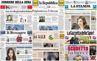- Iran, reporter italiana in cella. Ignote le accuse a Cecilia Sala: "Riportatemi a casa, fate presto". L'arresto il 19 dicembre, tre giorni dopo il fermo di un iraniano a Malpensa. La trattativa del governo: fase delicata. Il 2025 di Meloni, Schlein & C.: che anno sarà per i partiti? Manovra, la fiducia al Senato. Giorgetti: "Giusta la cautela". Gran Sasso, i due alpinisti trovati morti: "Impreparati alla bufera"