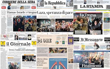 - L'apertura è sulla tregua a Gaza: “Hamas-Israele: è tregua. Dopo 467 giorni da domenica il cessate il fuoco. Festeggiamenti a Gaza”. In primo piano anche la reazione del presidente Usa uscente Biden e del neo eletto Trump, e le fasi della tregua “Il piano in tre fasi. Le liste dei rapiti, il ritiro dei soldati”. Spazio ancora al caos treni “Altri guasti, caos treni. Fs: possibili sabotaggi”. E allo “Scontro nel centrodestra su Zaia e terzo mandato”