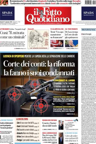 - La riforma della Corte dei Conti al centro della prima pagina: il quotidiano parla di “licenza di sperpero” mentre alla Camera è stato dato il primo sì alla riforma della giustizia sulla separazione delle carriere. In taglio alto il libro di Spiri che fa emergere alcune figure tra cui alcune lettere inedite di Craxi: “Berlusconi mi tratta come un criminale”. L’allarme dell’Usb sulle Ferrovie dello Stato: per i treni manca un manutentore su 4