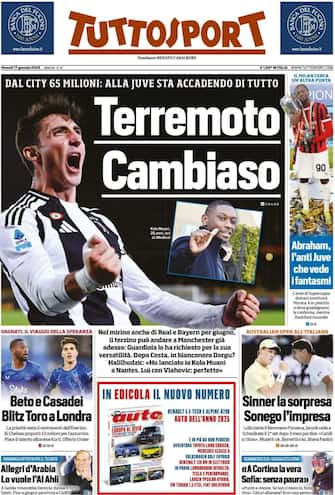 - “Terremoto Cambiaso” alla Juventus: per l’esterno bianconero il Manchester City ha offerto 65 milioni. Intanto l’attaccante Kolo Muani è arrivato a Torino dove ieri ha effettuato le visite al J Medical. Spazio al tennis con gli Australian Open e l’annuncio di Sinner sull’addio, a fine anno, del suo coach Cahill
