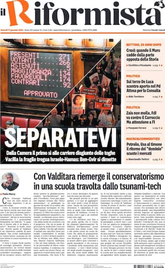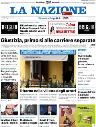 - Prima pagina divisa tra la guerra in Medio Oriente e il tema giustizia in Italia. Mentre in Israele ancora continuano gli scontri sulla tregua, a Gaza nuovi raid uccidono altre 80 persone. Toghe in rivolta invece sul tema della separazione delle carriere con l’arrivo del primo si in Aula, dove si sono detti favorevoli anche i deputati di Azione e +Europa. Nordio: “Renderemo i magistrati indipendenti dalle correnti”. Lutto nel cinema con la morte del regista David Lynch. Tennis: Sinner annuncia l’addio a fine anno del coach Cahill