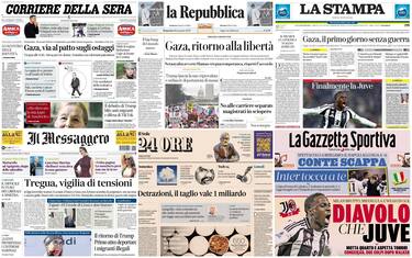 Aperture dei giornali dedicate all'entrata in vigore del cessate il fuoco nella Striscia di Gaza, con il primo scambio tra ostaggi israeliani e detenuti palestinesi. Ma Netanyahu avverte: "Tregua temporanea, Hamas rispetti l'accordo". Vigilia dell'Inauguration Day di Trump: la premier Meloni vola negli Usa, Salvini rimane in Italia. Poi lo sciopero dei magistrati contro la separazione delle carriere e la nascita di Comunità democratica con Ruffini