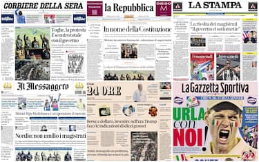 Aperture dei giornali dedicate alla protesta dei magistrati all'inaugurazione dell'anno giudiziario. Il ministro Nordio, contestato a Napoli, dice: "Non è una riforma punitiva". Parla la premier Meloni: "L'operazione Mps-Mediobanca può tutelare il risparmio. Dimissioni di Santanchè? La incontrerò, valutazioni in corso". Show di Hamas per la liberazione delle quattro soldatesse israeliane, esposte in piazza a mo' di trofeo. Infine Sinner, impegnato stamattina nella finale degli Australian Open contro Zverev