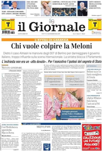 - In primo piano il caso Almarsi: “I ministri indagati litigano e chiudono il Parlamento. Riferite in aula. No”. In taglio basso anche il rinvio a giudizio per truffa aggravata nella vicenda del Pandoro e delle uova di Pasqua per Chiara Ferragni: “Pandoro o raggiro? Chiara Ferragni&C. imputati per truffa”