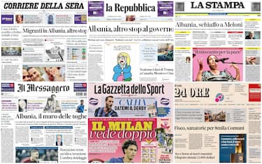 Aperture dei giornali dedicate al nuovo stop dei giudici al Piano Albania, con il rinvio della questione alla Corte di giustizia europea. Rientrano in Italia i 43 migranti portati nel centro di Gjadër. Il governo: "Siamo stupiti". Le opposizioni: "Soldi sprecati". La premier Meloni sul caso Almasri: "Gli italiani sono con noi". L'Ue chiede all'Italia di collaborare con l'Aja. In Germania salta l'asse Cdu-Afd: la legge anti immigrazione non passa. Israele-Hamas, oggi liberi altri tre ostaggi e 183 detenuti politici