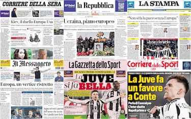 - Il summit Ue di Parigi sull'Ucraina domina l'apertura: "Ucraina, l'azzardo di Macron". Le parole di Marina Berlusconi: "Trump non distrugga l'Occidente". Al centro, il calcio con la vittoria dei bianconeri: "Inter sprecona, Juve più cinica: Conceiçao decide il derby d'Italia". Spazio alla cronaca: "Sbranata a 9 mesi dal pitbull". I dati sul consumo di alcolici: "Multe e salute, l'alcol in crisi". La situazione in Germania: "AfD isolata, anche la Cdu chiude: 'Nessuna alleanza'"