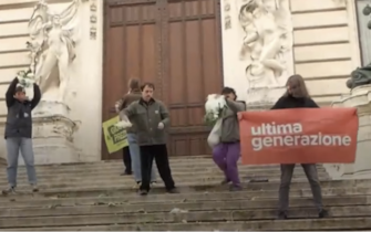 Blitz di Ultima Generazione al Parlamento, cibo marcio contro la scalinata di Montecitorio